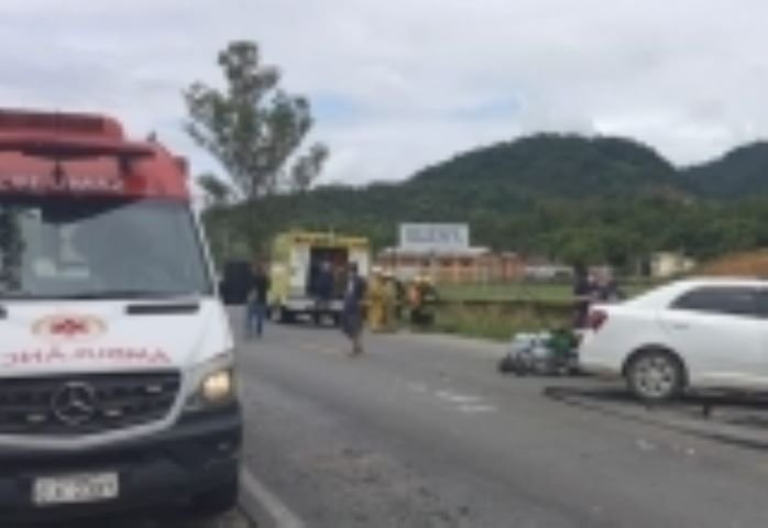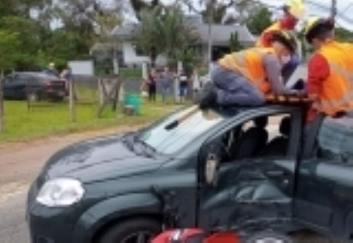Após acidente em Indaial motociclista vai parar em cima de veículo