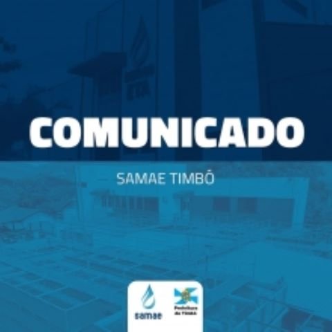 Estaremos mantendo a comunidade informada nas redes oficiais do SAMAE e da Prefeitura de Timbó.