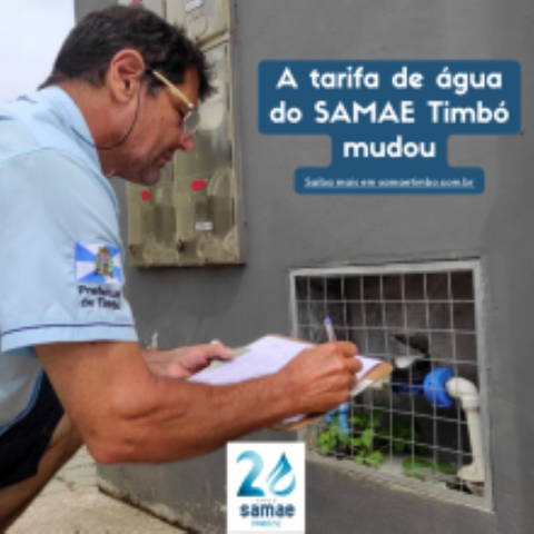 A partir do dia 3 de fevereiro de 2022, as tarifas de água do SAMAE Timbó seguirão o modelo de Tarifa Básica Operacional (TBO), que tem como foco a cobrança mais justa e com base no consumo real de cada usuário.