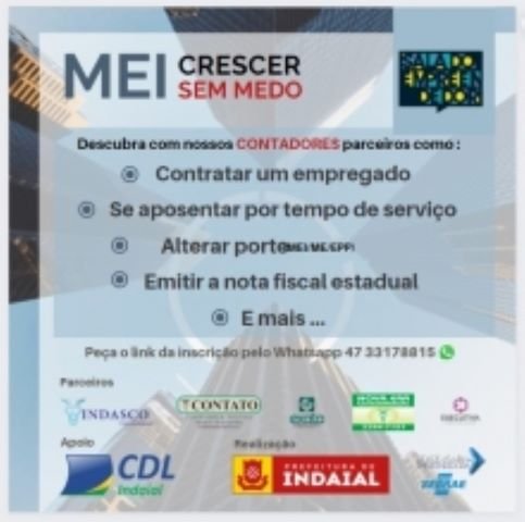 Com o objetivo de alavancar os negócios de quem empreende na cidade, a Sala do Empreendedor de Indaial lançou o projeto “MEI Crescer sem Medo” em parceria com os escritórios de contabilidade Contato, Exata, Executiva, Indasco e Nova Era, além do apoio da CDL (Câmara de Dirigentes Lojistas). A iniciativa irá proporcionar ao MEI informações de como proceder para contratar um empregado, emitir notas fiscais, alterar porte, entre outros dados importantes ao desenvolvimento da sua atividade.