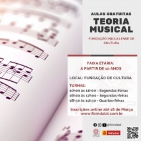 A Fundação Indaialense de Cultura está disponibilizando um novo curso de Teoria Musical a pessoas com mais de 10 anos, alunos de diversos cursos musicais da FIC e demais interessados da comunidade que desejam aprender teoria musical.