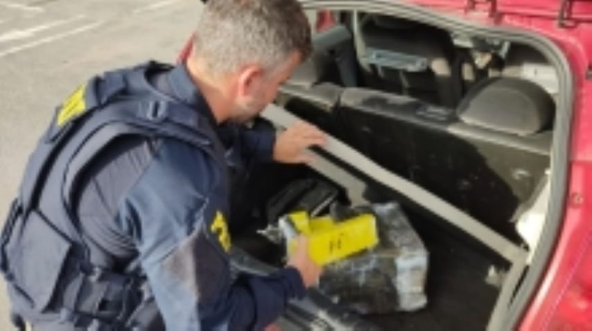 No porta-malas e banco traseiro do Citroen, os PRFs encontraram 135 tabletes de maconha, totalizando 91 quilos.