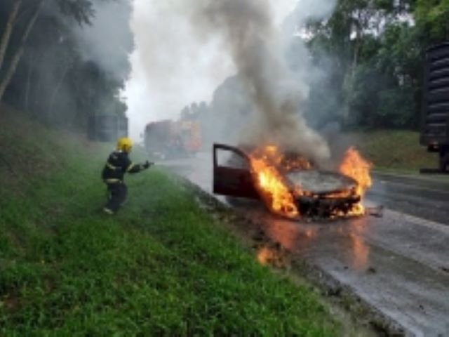 Um Veículo GM/Chevrolet Vectra vermelho, pegou fogo na manhã desta segunda-feira, (04) na BR-116, K-59, próximo ao trevo de acesso à cidade de Major Vieira, no bairro Floresta São João, em Papanduva.