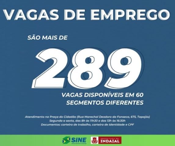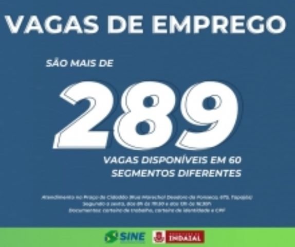 O Sine de Indaial anuncia mais de 289 vagas de emprego disponíveis em 60 segmentos diferentes, confira: