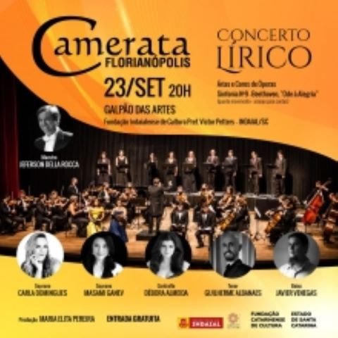 A Camerata Florianópolis, com regência do maestro Jeferson Della Rocca, apresentará nesta sexta-feira, dia 23, às 20h, no Galpão das Artes, em Indaial, um especial concerto de canto lírico, com famosas árias e coros de óperas, oratórios e peças do gênero, com entrada gratuita.
