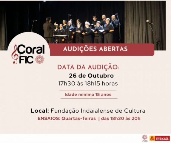 Semestralmente o Coral da FIC seleciona novas vozes para participar deste Grupo, que há mais de 20 anos encanta seu público. A participação é gratuita e voluntária para pessoas com 15 anos ou mais.