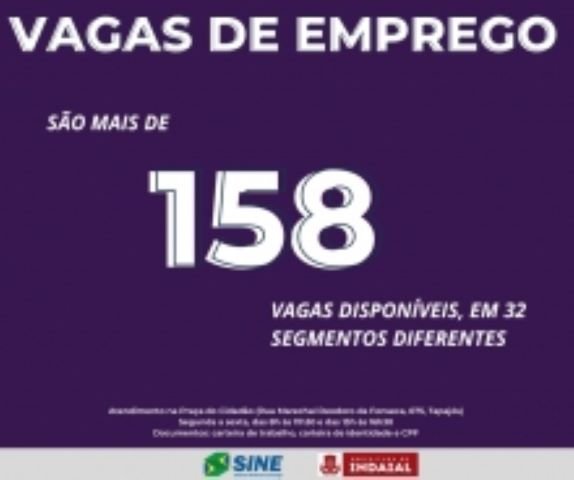O Sine de Indaial comunica que há mais de 158 vagas de emprego disponíveis em 32 segmentos diferentes.