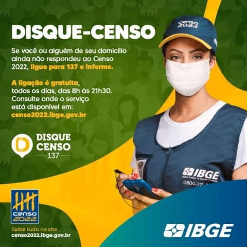 A coleta do Censo 2022 está em campo desde agosto do ano passado. Os recenseadores do IBGE estão visitando todos os domicílios brasileiros. Caso você não tenha respondido ao questionário, verifique se alguém no seu domicílio respondeu.