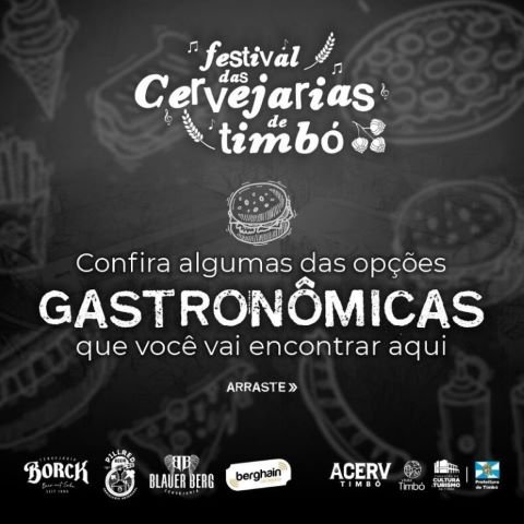 Além de muita cerveja e música para degustar, o Festival das Cervejarias de Timbó também vai contar com uma grande variedade gastronômica e de alta qualidade em sua praça de alimentação. O Festival acontece entre os dias 13 e 16 de abril, no Parque Central.