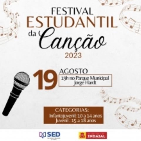 Os entusiastas da música já podem se preparar. É neste sábado, 19 de agosto, o Festival Estudantil da Canção, realizado pela Secretaria de Educação. O evento está programado para acontecer às 19h, no Parque Municipal Jorge Hardt.