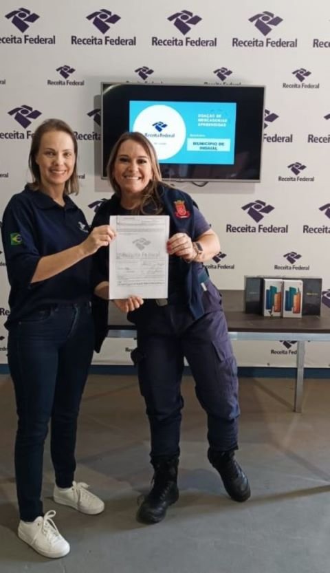 Através de uma parceria entre o Departamento Municipal de Trânsito de Indaial e a Receita Federal, o Demuttin está recebendo equipamentos doados pelo órgão que vão ampliar a estrutura de atendimento e fiscalização. Nessa quarta-feira (23), a diretora de Trânsito, Sheila Daiana Almeida, esteve em Joaçaba, no posto da RF, retirando celulares já disponibilizados pela Receita.