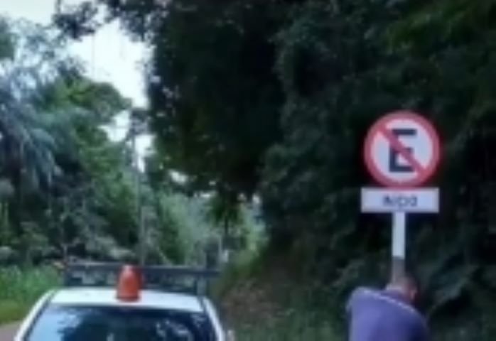 O Demuttin informa que o trânsito está em meia pista na rua Dr. Blumenau
