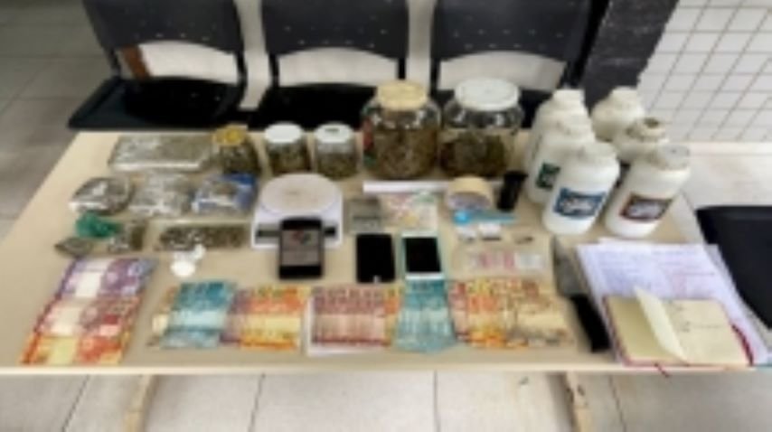envolvido foi preso e, em buscas na propriedade, a guarnição localizou 1,5 quilo de maconha, 10 gramas de cocaína, R$ 1,330,00 em espécie, dois celulares, 241 cédulas falsas de real, sementes e fertilizantes para plantio de maconha, além de anotações e petrechos utilizados para o tráfico de drogas.