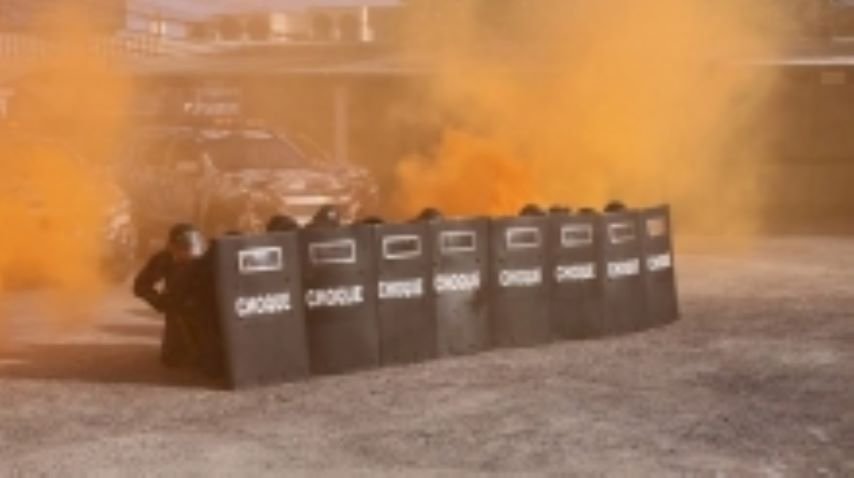 No início da cerimônia, os formandos entraram no pátio do quartel realizando uma demonstração das formações táticas utilizadas em controle de distúrbios civis.