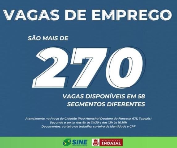 O Sine de Indaial comunica que há mais de 270 vagas de emprego disponíveis em 58 segmentos diferentes, confira: