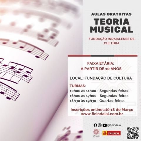 A Fundação Indaialense de Cultura está disponibilizando um novo curso de Teoria Musical a pessoas com mais de 10 anos, alunos de diversos cursos musicais da FIC e demais interessados da comunidade que desejam aprender teoria musical.