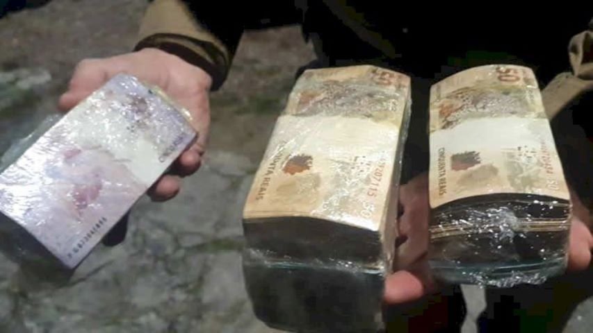 Retornando ao local, os policiais encontraram três envolucros plásticos com cerca de R$ 50 mil em espécie. Outros dois maços de dinheiro foram encontrados no bolso do passageiro, no momento em que ele ainda tentava se desfazer deles.