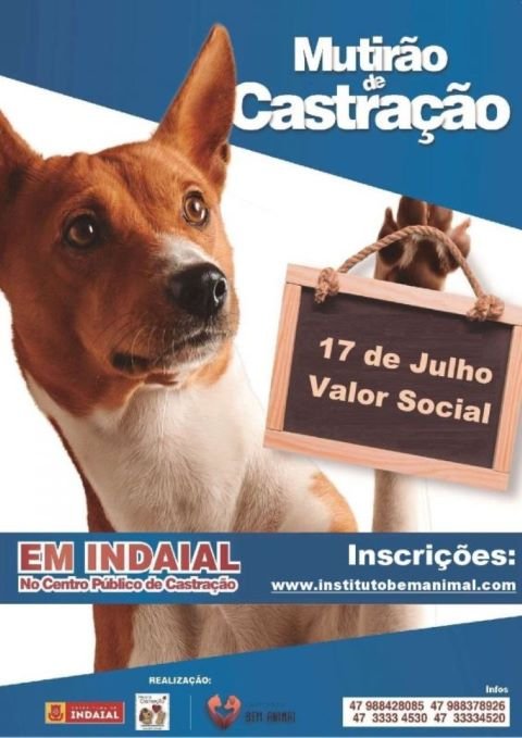 Estão abertas as inscrições para o sexto Mutirão de Castração Animal de 2022, uma parceria da Prefeitura de Indaial com o Instituto Bem Animal. A ação acontecerá no domingo, 17 de julho. Gatos e cães poderão ser castrados. No caso de cães, as exceções são para as raças pug, bulldog, pequinês e lulu-da-pomerânia. A cirurgia ocorrerá no Centro Público (rua Marechal Deodoro da Fonseca, 4.600).