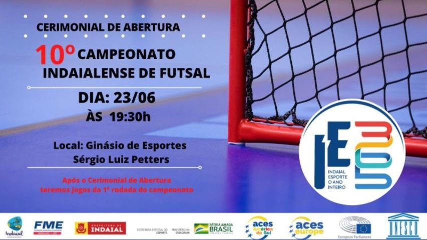 Nesta quinta, 23, a bola pesada volta a rolar na cidade na abertura do Campeonato Indaialense de Futsal, a partir das 19h30. A abertura oficial da competição ocorre no Ginásio Sérgio Luiz Petters, no Centro de Indaial, com entrada gratuita.