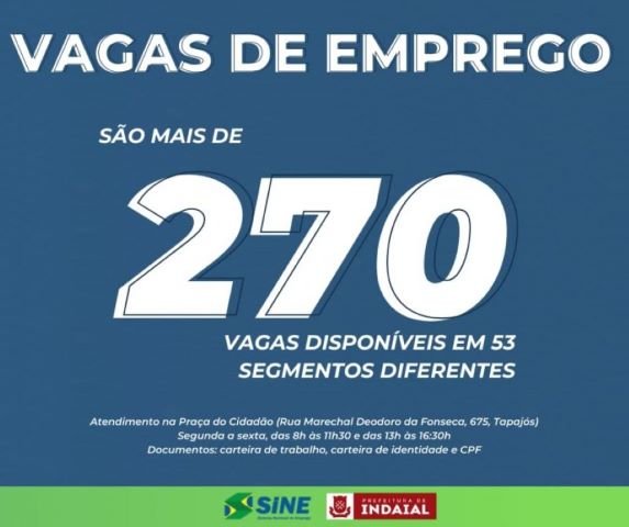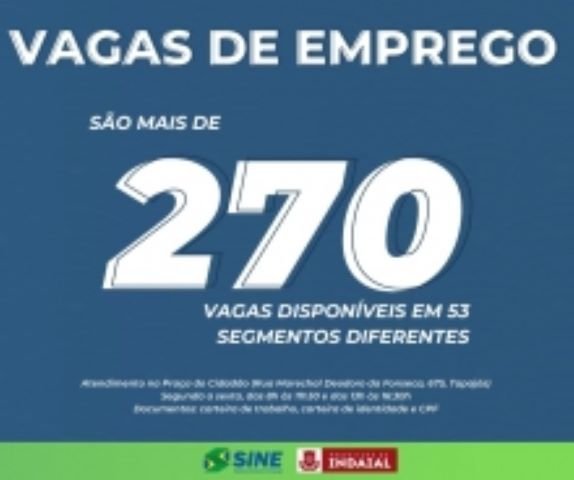 O Sine de Indaial comunica que há mais de 270 vagas de emprego disponíveis em 53 segmentos diferentes. Confira as oportunidades: