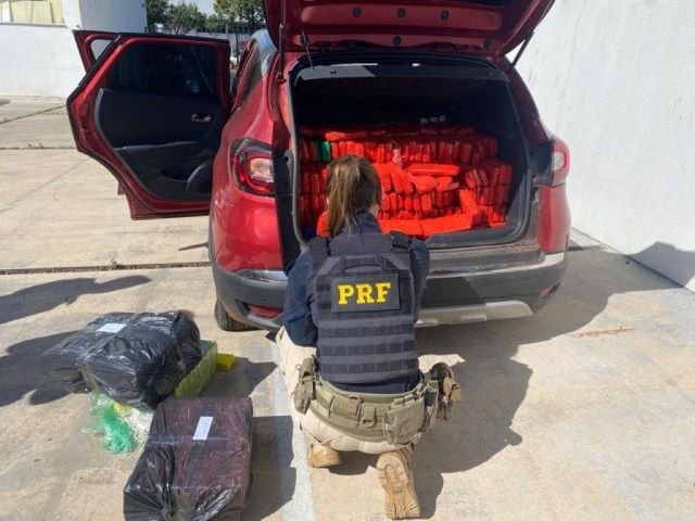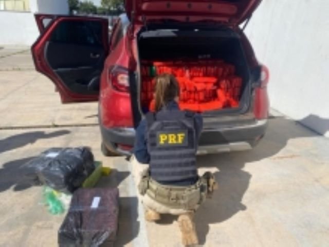 O carro que transportava a droga foi imobilizado após 15 km de perseguição na BR-282. O veículo recebeu ordem de parada, mas escapou em alta velocidade, realizando manobras arriscadas na rodovia.
