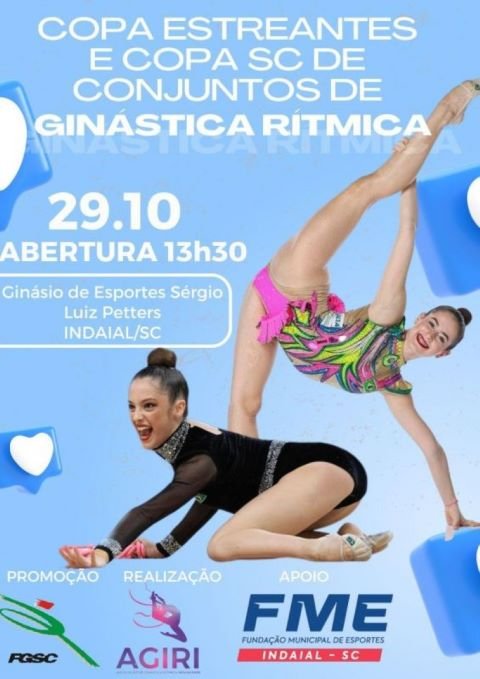 O Município de Indaial sedia neste sábado, 29 de outubro, a Copa Primeiros Passos – Etapa Estadual, a Copa Estreantes e a Copa SC de Conjuntos de Ginástica Rítmica. A competição acontecerá no Ginásio de Esportes Sérgio Luiz Petters, localizado na Av. Pioneiros, 2, Centro.