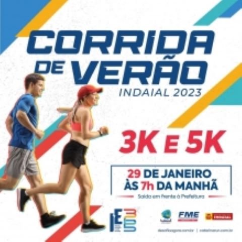 A Fundação Municipal de Esportes de Indaial realiza neste domingo, 29 de janeiro, a Corrida de Verão 3k e 5k. O evento será a partir das 7h, com saída em frente à Prefeitura. As inscrições já estão encerradas. A retirada dos kits acontecerá a partir das 6h de domingo.