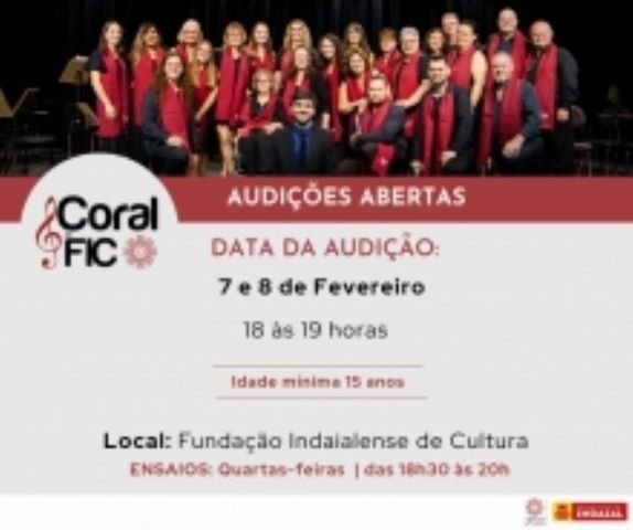 A audição será nos dias 7 e 8 de fevereiro, das 18h às 19h, na sede da Fundação (rua Dr. Blumenau, 5, Centro). Os interessados devem fazer a inscrição prévia através do link: http://www.ficindaial.com.br/fundacao/coral-da-fic/