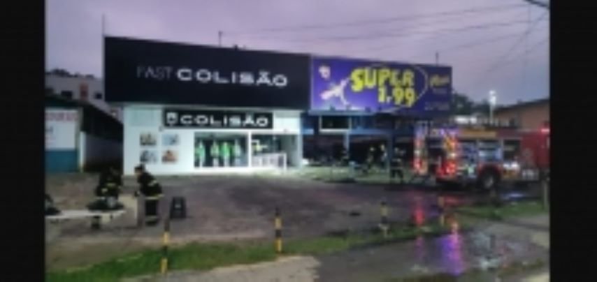 Uma das lojas do Super 1,99 em Indaial foi destruído pelas chamas na madrugada deste domingo (12)