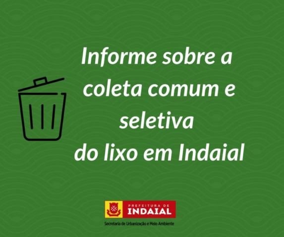 A Secretaria de Urbanização de Indaial informa que temporariamente haverá um 3º turno do serviço de coleta comum e seletiva de lixo e mais veículos em circulação para a prestação do serviço. O objetivo é regularizar as coletas nos bairros, tendo em vista a quantidade volumosa de resíduos, o desgaste físico dos funcionários e as chuvas dos últimos dias.