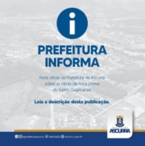 Nota oficial da Prefeitura de Ascurra sobre a nova ponte do bairro Guaricanas.